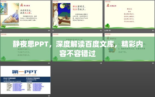 在百度文库中,静夜思》的PPT内容主要包括以下几个方面: