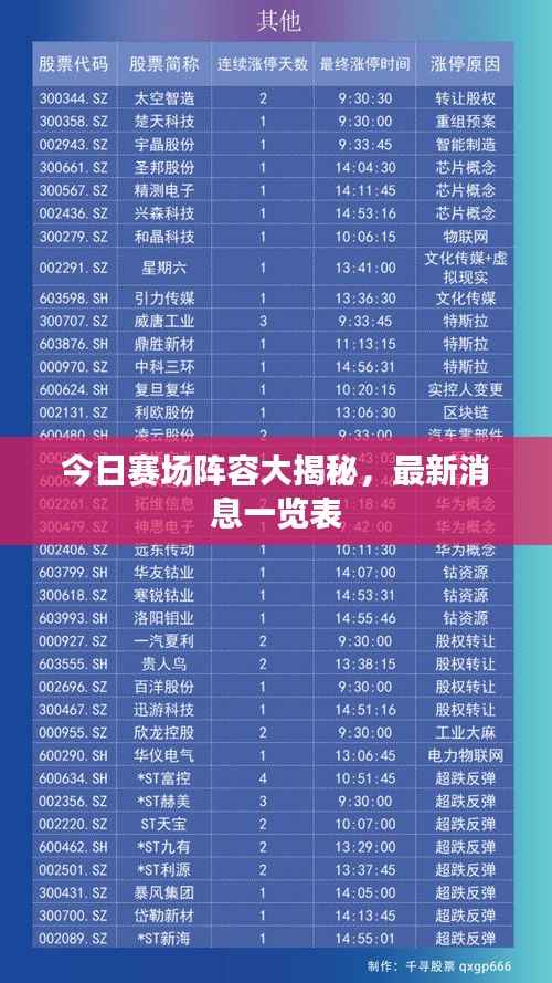 随着赛事的日益临近,全球体育迷的目光都聚焦在了各大赛场之上,我们有幸获得了最新的赛场阵容消息表,为大家带来最全面的参赛队伍和选手信息,让我们一起揭晓这场激烈比赛的神秘面纱。