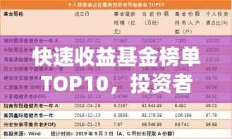 转载请注明来自安防监控安装,本文标题:《快速收益基金榜单TOP10,投资者优选指南》