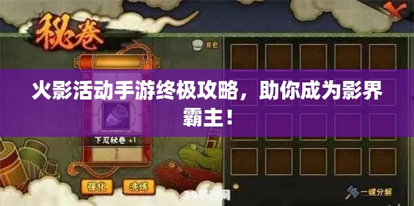转载请注明来自安防监控安装,本文标题:《火影活动手游终极攻略,助你成为影界霸主!》