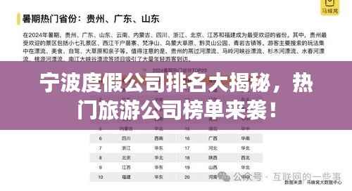 宁波,这座美丽的海滨城市,以其独特的自然风光和丰富的旅游资源吸引着无数游客,随着旅游业的繁荣,宁波的度假公司也应运而生,为游客提供更加优质的服务和多元化的旅游体验,本文将为您介绍宁波度假公司的排名,带您了解这些公司的优势和特色。
