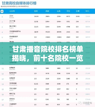 甘肃作为中国的西北地区的重要省份,其播音专业的发展也日渐受到关注,随着媒体行业的快速发展,播音专业成为许多年轻人的热门选择,以下是甘肃地区播音院校排名前十名,这些学校以其优质的教学质量和良好的就业前景吸引了众多学子。