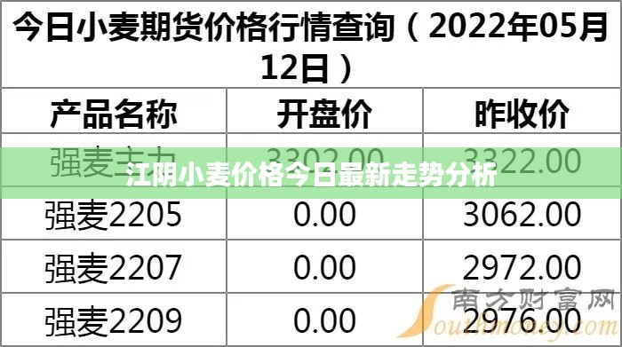 随着农业经济的发展和全球市场的变化,小麦价格一直备受关注,作为重要的粮食作物,小麦的价格波动不仅关系到农民的利益,也关系到消费者的日常生活,本文将对今日江阴小麦价格的最新动态进行详细介绍。