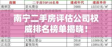 随着南宁房地产市场的繁荣发展,二手房交易日益频繁,对于购房者而言,选择一家专业、可靠的二手房评估公司至关重要,本文将对南宁二手房评估公司进行排名介绍,帮助购房者更好地了解并选择适合自己的评估公司。