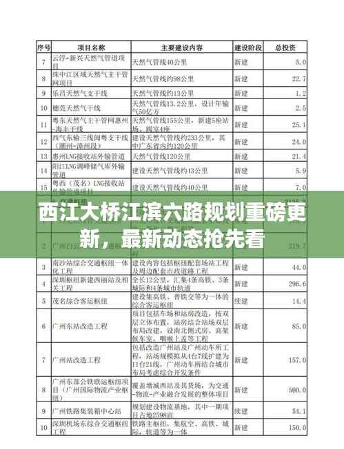 江滨六路作为西江大桥周边的重要道路,其规划方案已经出炉,根据最新的规划消息,江滨六路将进行大规模的改造和扩建,改造后的江滨六路将更加注重人性化设计,增加绿化带、人行道和非机动车道,提高道路的通行能力和舒适度,还将建设一系列配套设施,如公交站、交通信号灯等,以进一步提升道路的服务水平。