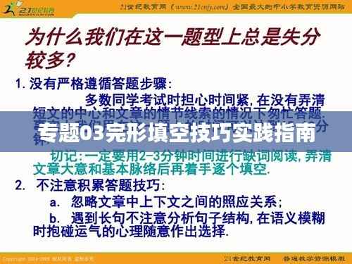 在英语学习过程中,完形填空是一种重要的语言技能,也是各类英语考试中常见的题型之一,专题03完形填空,旨在帮助学生提高在这一题型上的解题技巧,通过实践深化理解和应用,本文将介绍完形填空的基本技巧,并结合专题03的特点,给出实践建议。
