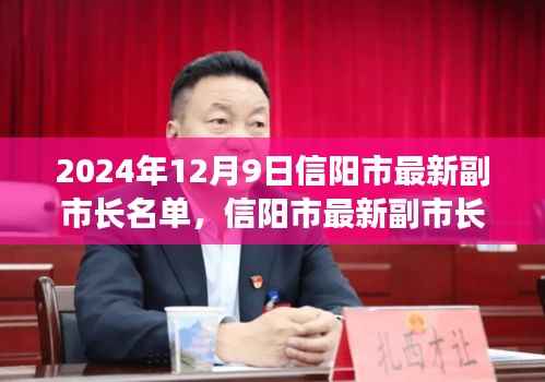 随着时光的推移,我们迎来了崭新的2024年,在这充满活力的一年中,信阳市的发展日新月异,而领导该市发展的领导集体也焕发出新的活力,本文将重点关注2024年12月9日信阳市最新副市长名单,探讨新任领导将为信阳市带来的新气象。