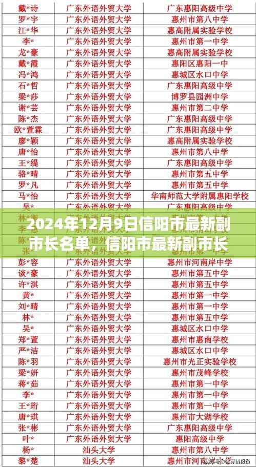 2024年12月9日,信阳市最新副市长名单正式公布,新任命的副市长包括: