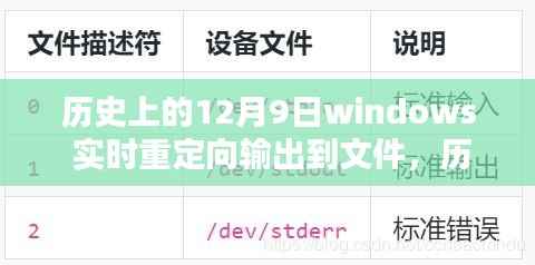 每年的12月9日,对于科技界而言,都有着重要的历史时刻,在信息技术飞速发展的今天,我们回顾历史上的这一天,不禁要关注Windows操作系统的发展历程,实时重定向输出技术作为Windows系统的重要功能之一,对于计算机用户的工作效率有着极大的影响,本文将围绕历史上的12月9日,探讨Windows实时重定向输出到文件的技术演变及其重要性。