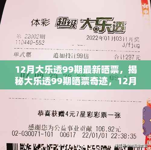 随着年末的临近,彩民们的热情愈发高涨,在这充满期待的时刻,我们迎来了大乐透的第99期开奖,本文将为您带来“12月大乐透99期最新晒票”的独家报道,揭示幸运儿们的神秘面纱,分享他们的喜悦与激动,让我们一同走进这场揭晓盛宴,见证奇迹的诞生!
