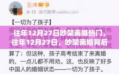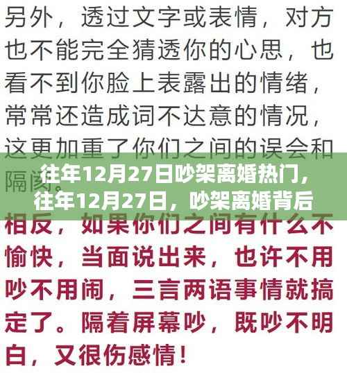 随着年末的脚步临近,每年的十二月都会上演着各种故事,而在往年中的某个特定日子——12月27日,似乎格外引人关注,因为这一天与吵架离婚的话题紧密相连,本文将探讨这一天的热门话题背后的情感纷争和社会现象,并试图揭示其深层原因。