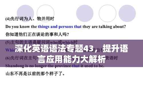 随着英语学习的深入,我们逐渐认识到英语语法的重要性,作为英语语言的基石,语法不仅帮助我们理解语言结构,更是提升听说读写各方面能力的基础,本文将围绕“英语语法专题43”展开,帮助大家深化理解,提升语言应用能力。