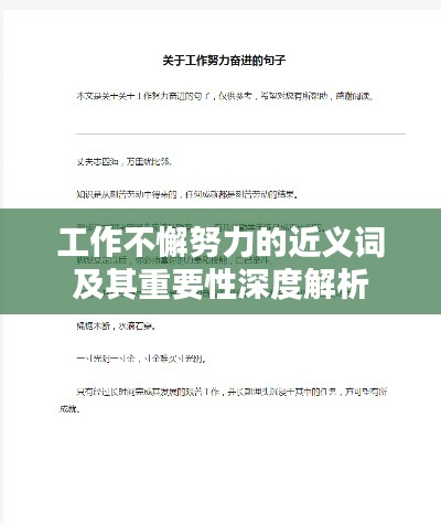 在现代社会,不断进步和发展的步伐要求我们在工作和生活中始终保持努力的精神,本文将探讨“工作不断努力”这一主题,并介绍与之相关的近义词,阐述其内涵和重要性。