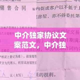 在房地产市场、版权交易、商务合作等领域,中介独家协议是一项重要的法律文件。它明确了中介机构与委托人之间的权利义务关系,确保了交易的顺利进行。本文将为您提供一份中介独家协议文案范文,帮助您更好地了解和运用此类协议。