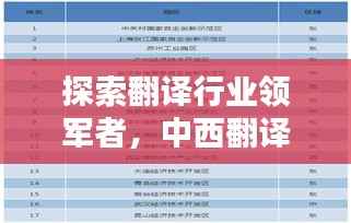 随着全球化的不断深入,翻译行业正在迅速发展,中西翻译公司在这一进程中扮演着重要角色,它们扮演着文化桥梁的角色,将信息准确、有效地从一种语言传递到另一种语言,本文将探讨中西翻译公司的排名,揭示那些在翻译行业中表现突出的领军者。