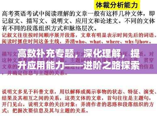 高等数学是理工科学生必修的重要课程之一,它不仅是后续专业课程的基石,更是培养学生逻辑思维和问题解决能力的重要途径,对于许多学生而言,高数的学习并非易事,为了帮助学生深化理解、提高应用能力,本文将围绕“高数补充专题”展开,旨在为学生提供更为详尽、深入的学习内容。