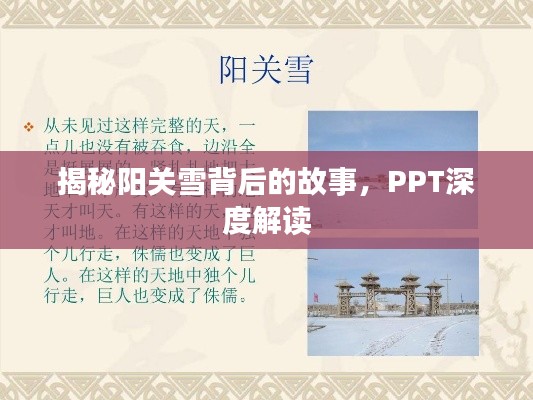 注:以上内容仅为示例性文本,实际PPT内容需根据具体需求和实际情况进行丰富和调整,如需更多关于阳关雪的信息和资料,可通过百度搜索获取。