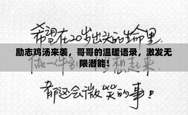 在这充满挑战与机遇的世界里,我们都需要一份坚持与鼓励,哥哥的话语,如同暖心的鸡汤,给予我们力量,以下是为您精心准备的“哥哥鸡汤语录励志”,希望能为您的生活带来阳光和动力。